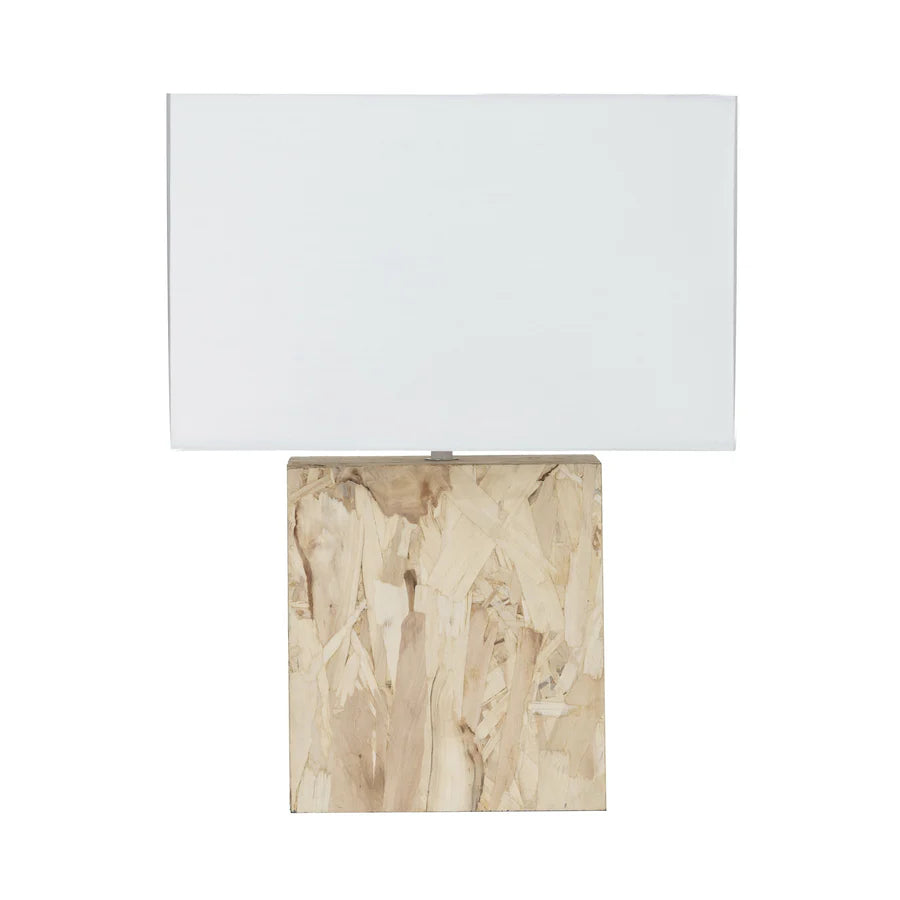 The base features a wooden design, complementing the neutral lamp shade. Dazzle your space with this charming table lamp from Amalfi.
