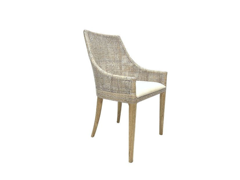 This dining chair features an elegantly curved woven double skinned rattan which wraps around the sides and back. Woven by hand with sustainable rattan, which adds to that “island living” feel.